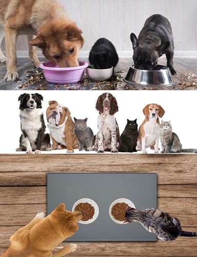 MEWTOGO ペットマット - 猫 犬 食事マット 給餌マット ボウル置き用 防水 溢れ止め 撥水 滑り止め シリコン 犬 トイレトレー ペット 滑り止め マット トイレ下敷きマット シリコンマット 猫用 犬用 多機能 大サイズ 60*40*1cm グレー