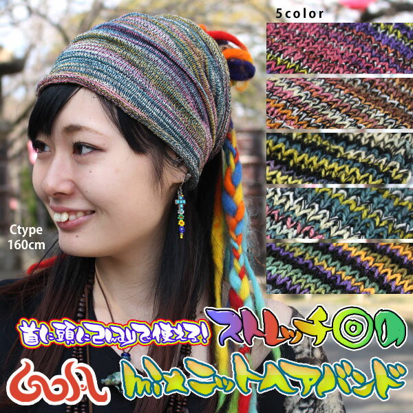 ヘアバンド カラフルニット編み エスニック アジアン ファッション アジアン雑貨 ゴア ターバン 帽子 何点でも